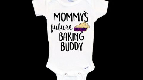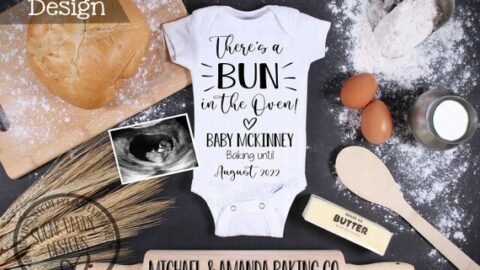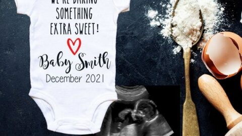 All you need is this cute baby bodysuit and some baking supplies to recreate this super cute baking pregnancy announcement yourself.