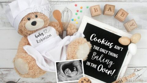 If you love making cakes and cookies and are expecting your very own bun in the oven, why not make a baking pregnancy announcement?