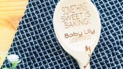 If you are looking for a really nice pregnancy announcement gift to give a baking aficionado, then how about this customized wooden spoon that will look so cute on display in the kitchen.