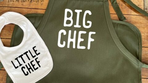 This adorable parent and me matching apron set is the perfect idea for a cooking pregnancy announcement.