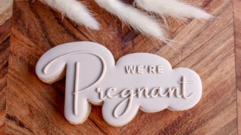 If you are looking for a fun cookie pregnancy announcement, these embossed cookie cutters are so classy and elegant.