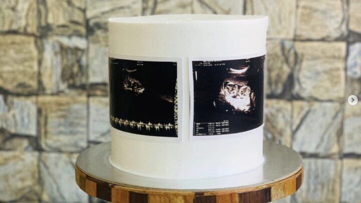 Keep it sweet and simple with a white cake and your sonogram photo like in this cake from Cake-A-Lious in UAE.