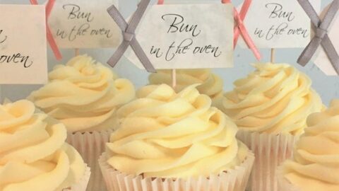 You don't need to bake a fancy cake for the perfect announcement. Simple cupcakes with fun little toppers are a great way to serve a crowd and share your big news to everyone.
