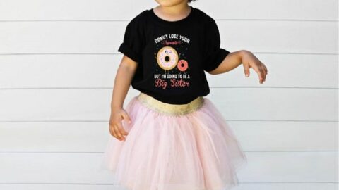 Here is a really simple pregnancy reveal idea that would make a wonderful pregnancy announcement gift for grandparents. I love these fabric donuts that you easily switch out for real donuts to recreate this announcement. You can also click through to get this digital sign on Etsy and edit it yourself - perfect for social media! Keep it simple with a pregnancy announcement using a box of donut holes and this cute sign from Etsy. How adorable is this sibling t-shirt? Perfect for a donut pregnancy announcement! Here is another great idea if you are planning to announce your pregnancy to family and friends in person and you want to give them a little gift! This sprinkle announcement is so fun and easy to DIY (or use the editable file at the link).