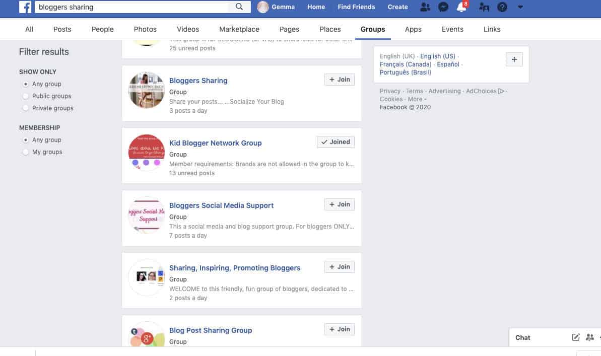 - Sharing Threads- there are threads on Facebook where you drop a link or a pin and then share others posts . I have used these since the beginning for both blogs and find them to be useful. To find sharing groups, either start your own or search on Facebook for groups to join.