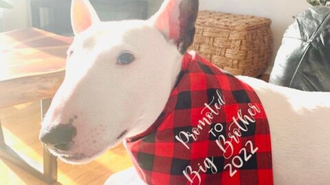 Wearing a cute tee that shows you bump or getting a fur baby in on the surprise are all really fun ways to announce your pregnancy without going overboard.