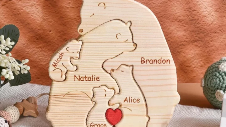 This Hug Love Bear Family Jigsaw Puzzle is a great gift for Father's Day. The pap bear hugs mama and the kids - make it personalized for our family.