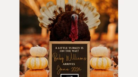 Thanksgiving is the perfect time to share how grateful you are to be blessed with a bun in the oven so if you are expecting a spring baby next year, it’s the perfect time to share your news.